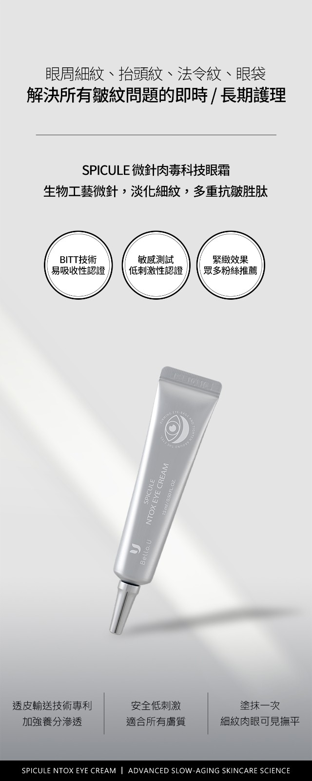 11分鐘前韓國最新科技【微針肉毒眼霜】✔️ 淡化細紋 ✔️ 暗沉改善 ✔️ 不黏膩、吸收超快 ✔️ 馬上有感、懶人保養 - 【體驗套装】3入組-NT$1090,還剩13組!!!